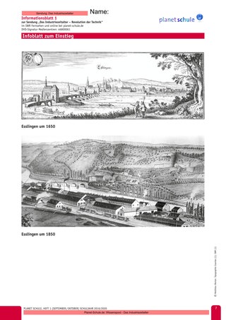 Das Industriezeitalter ist geprägt von enormen wirtschaftlichen und gesellschaftlichen Veränderungen. Kein Bereich des Lebens, in dem diese ‚Revolution‘ nicht eingegriffen hätte. Dies ist der Grund, warum schon zu Beginn dieses Geschichtsunterrichts das Phänomen der Veränderung ins Zentrum der Betrachtungen gerückt wird. Anhand eines lokalhistorischen Beispiels, welches im Film aufgegriffen wird (Esslingen), schildern die Schülerinnen und Schüler zunächst die für sie sichtbaren Veränderungen im Stadtbild.