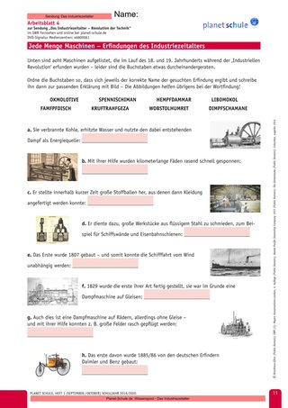 | 8 | 5‘ | Anschauen des 3. Filmausschnitts | PL | Film „Das Industriezeitalter – Revolution der Technik“, 3. Teil 10:55 bis Filmende |