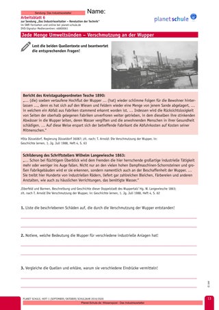 Hier wird dem letzten Filmausschnitt ein wenig vorausgegriffen. Im Mittelpunkt der Quellenarbeit steht der multiperspektivische Ansatz bei der Beurteilung der industriellen Entwicklung im Tal der Wupper: einerseits Kritik an der zunehmenden Umweltverschmutzung, andererseits Begeisterung für die Errungenschaften der Industrie.