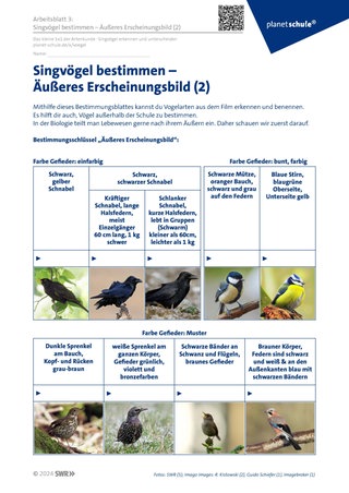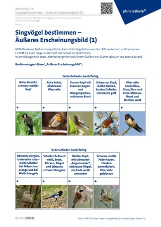 Arbeitsblätter 2 und 3: Vögel bestimmen anhand von Aussehen und Gesang
