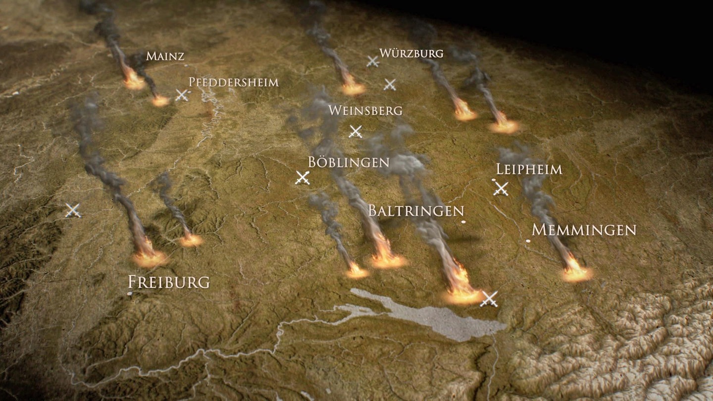 Überall in Mittel- und Süddeutschland kam es zu blutigen Auseinandersetzungen