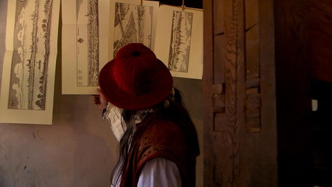 In der Kunst arbeitet man nun mit der Zentralperspektive, die dem räumlichen Sehen in der realen Welt nun immer näher kommt. Das gilt für Gemälde, aber auch für den in Mode kommenden Kupferstich. Wir zeigen im Experiment diese Drucktechnik, die heute nur noch wenige beherrschen. Damals boomte die Kupferstecherei, denn die relativ preisgünstigen Druckwerke konnten sich nun auch „normale Menschen“ leisten. Der geschäftstüchtige Protestant Matthäus Merian baut mit seinen Werkstätten in Oppenheim und Frankfurt mit der Kupferstecherei ein Imperium auf. Er setzt konsequent die „Medienrevolution“ fort, die Gutenberg mit dem Buchdruck begonnen hatte.