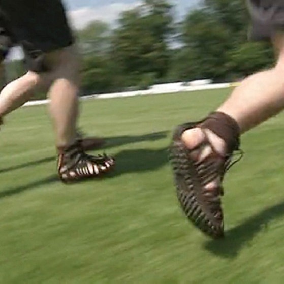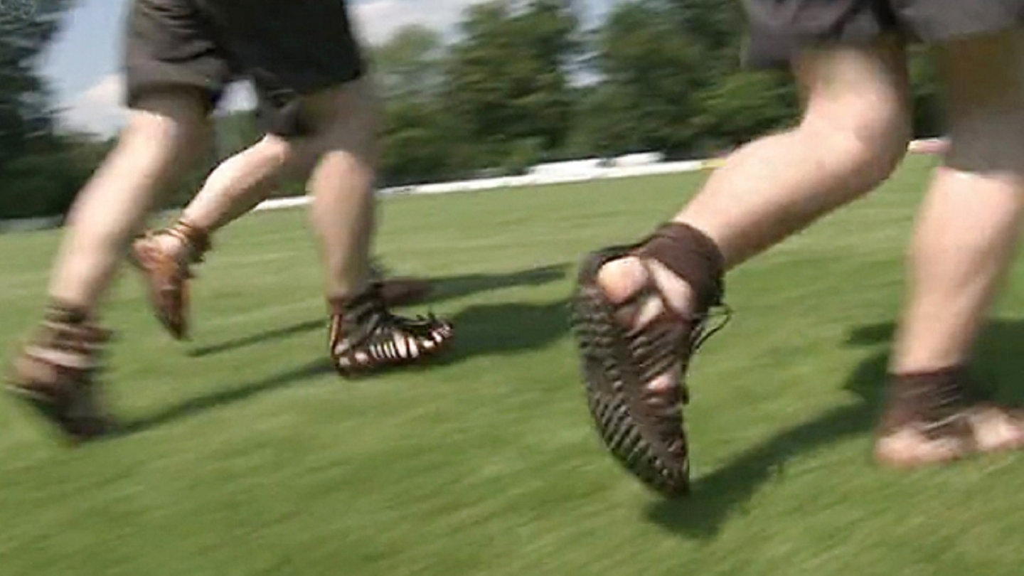 Die Sandalen schnitten im Test ebenfalls gut ab. Durch die genagelte Sohle waren die Schuhe im Gelände sehr griffig und durch die Schnürung ließen sie sich gut an den Fuß des Trägers anpassen. Im Winter konnte man dicke Socken oder Fußlappen anlegen, man weitete einfach die Schnürung. Die Testläufer im Film waren nach einer kurzen Eintragezeit sehr zufrieden mit dem Schuhwerk, das man heute als „Multifunktionsstiefel“ verkaufen würde. Die Römer waren schon sehr praktisch veranlagt…