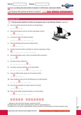 Von Beginn an werden die Schülerinnen und Schüler zum Mitdenken ermuntert, ihre Fantasie angeregt. Durch die Einschränkungen, die nach und nach mittels der weiteren Informationen entstehen, rückt das rätselhafte „Objekt der Begierde“ mehr und mehr in den Mittelpunkt der Geschichtsstunde. Anfangs werden vermutlich Begriffe wie „Soldat“ oder „Legionär“ in Erwägung gezogen, danach vielleicht „Kastelle“ oder „Limes“. Erst mit den letzten Informationen wird klar, dass es sich um Boote oder Schiffe handeln muss. Die Spannung bleibt also erhalten.