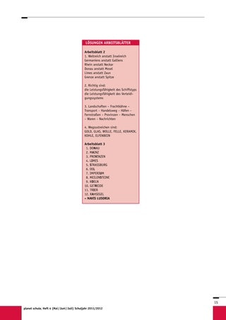 Danach werden der Klasse die verschiedenen Begriffe vorgelesen. Da vor allem die abschließende Information zum Verkehr auf den beiden Flüssen Rhein und Donau sehr hilfreich ist, wird die Trefferquote recht hoch liegen, was auch beabsichtigt ist. Schließlich sollen die Kinder in ihren Ideen bestätigt und somit motiviert werden.