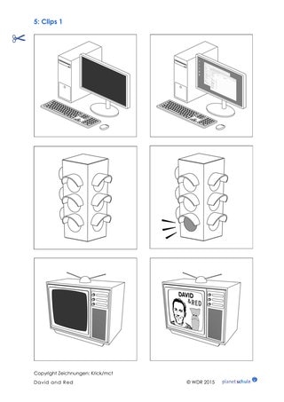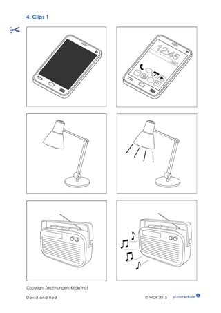 Material: Schere, bei Bedarf: Stifte zum Ausmalen, Clip „On, off“ (Timecode: 05:47 – 07:22)