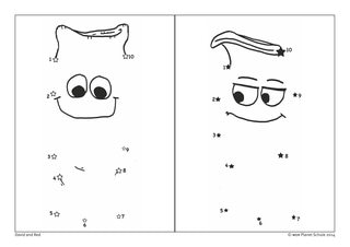 Wie Red und David verbinden auch die Kinder Sterne zu Sternbildern. Während sie die Sterne verbinden, sprechen sie die Ziffern laut mit. So wiederholen sie die Zahlwörter.