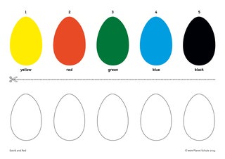 Die Folge eignet sich gut für die Zeit um Ostern, wenn sich die Klasse ohnehin mit Eiern befasst: Beim Partner-Farbdikatat werden Farben und Zahlwörter wiederholt. Ein Kind erhält die farbige Hälfte des Arbeitsblattes, der Arbeitspartner die andere. Beide setzen sich so, dass sie die Hälften des jeweils anderen nicht sehen. Das eine Kind nennt nun der Reihe nach die Farben seiner Eier: "Egg number 1 is..., egg number 2 is...". Der Arbeitspartner malt die Eier in den richtigen Farben aus, danach wird getauscht.