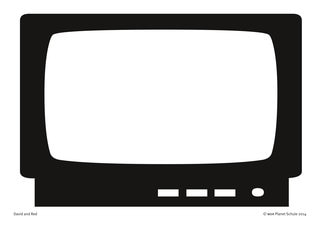 Wie David und Red gestalten die Kinder eine Mini-Fernsehshow. Dafür können Sie den Rahmen des Fernsehers aus der PDF-Vorlage mit dem Kopierer vergrößern und auf einen Karton aufkleben. Die Mitte wird ausgeschnitten, der Karton auf einen Tisch gestellt, so dass sich ein oder zwei Kinder dahinter setzen können. Ein anderes Kind schaltet den Fernseher an, dann beginnt die Show. Das Kind hinter dem Fernseh-Karton wiederholt die Sätze aus dem Clip von David und Red und setzt dabei seinen Namen ein: "Hello boys and girls! Welcome to the '... Show'!" und singt ein kurzes Lied aus dem Englischunterricht. Haben die Kinder Sockenpuppen gebastelt, können auch nur die Handpuppen "im Fernsehen" zu sehen sein.