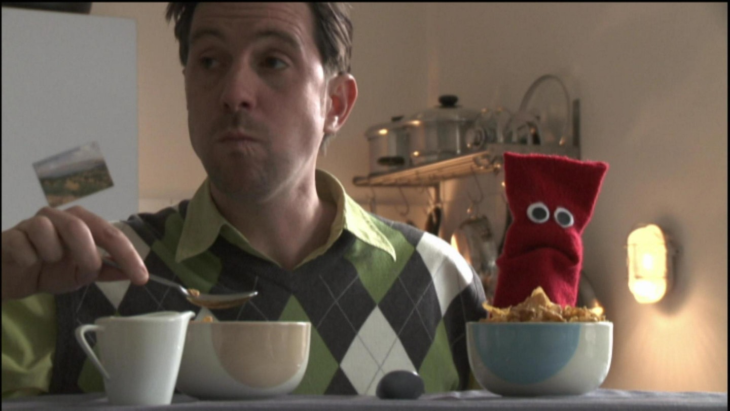 It is eight o'clock – time for breakfast. But Red sleeps again at the breakfast table.