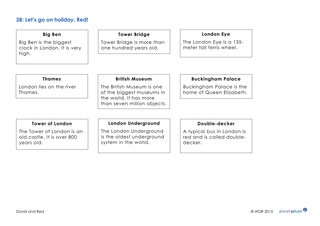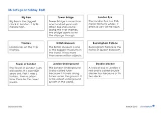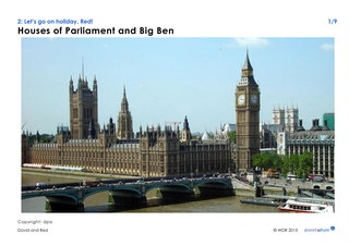 L: "David and Red are visiting London. First, they visit Big Ben. Big Ben is the biggest clock in London. And everybody in London tells the time with Big Ben.