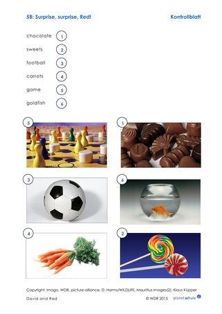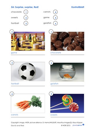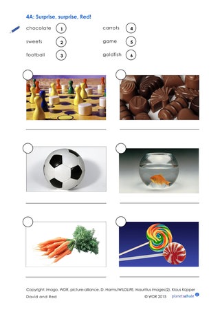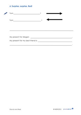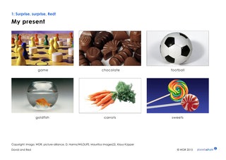 In Partnerarbeit spielen die Schüler "Guess what's in the box". Sie malen auf eine Seite eines Blatts eine Geschenkbox und auf die Rückseite das Geschenk, das in die Box passt. Dazu schneiden sie einen der Vorschläge auf Arbeitsblatt "Geschenke" aus und kleben ihn auf die Rückseite. Dabei sind auch "Quatschgeschenke" ähnlich wie Reds Salami. Die Kinder können auch ein Geschenk malen. Dann zeigen sie die Seite mit der Box dem Partner, und er muss raten, was in der Geschenkverpackung ist.