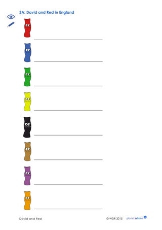 Bei der Reihe "David and Red in England" gibt zu jeder der zwölf Folgen einen ausführlichen Vorschlag für begleitende Aufgaben und Spiele in der Klasse, für Gruppen-, Partner- und Einzelarbeit. In den Unterrichtsvorschlägen beschreiben wir einen möglichen Ablauf und machen Formulierungsvorschläge, wie die Lehrerin oder der Lehrer die Situationen in Englisch einleiten und begleiten kann. Die Bildkarten und Arbeitsblätter können als PDFs heruntergeladen und ausgedruckt werden. Zu Beginn jeder Folge listen wir kurz das Thema, den Wortschatz und die Sprachstrukturen/"chunks" auf, die mit der Folge vermittelt werden.