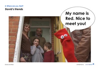 Zunächst wird der Anfang des Films noch einmal gezeigt. Stoppen Sie, nachdem Red sich bei der ganzen Familie vorgestellt hat. Danach äußern sich die Schülerinnen und Schüler spontan ihrem Sprachstand entsprechend in der Muttersprache, Zielsprache oder Lernersprache (Einwortsätze, einzelne Ausdrücke oder gemischt mit deutschen Wörtern).