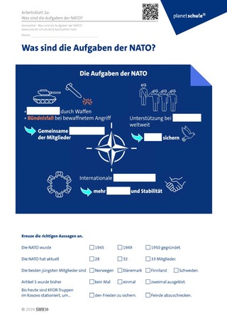 Material: Film, Arbeitsblatt 2a oder 2b: Was sind die Aufgaben der NATO?