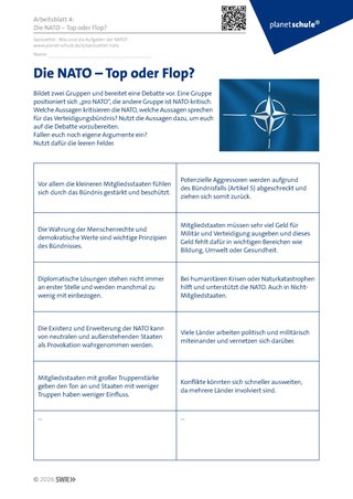 Material: Arbeitsblatt 4: Die NATO – Top oder Flop?