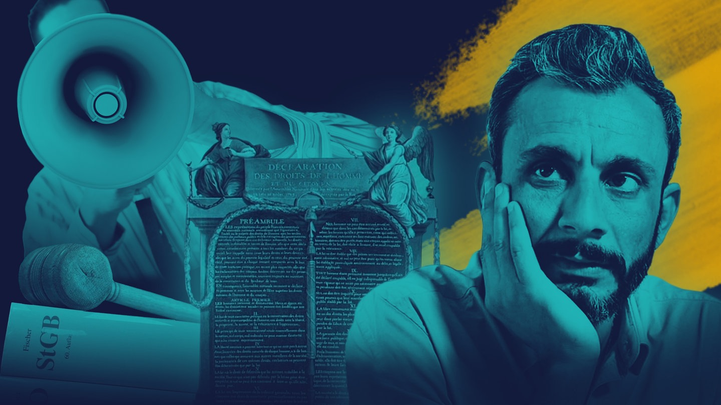 Das Gleichgewicht all dieser Faktoren wird auch in unserem Alltag immer wieder neu auf die Probe gestellt. Moderator Ramo Ali erkundet unterschiedliche Aspekte des Grundrechts „Meinungsfreiheit“. Als geflüchteter Syrer hat er erfahren, was es heißt, in einem Land zu leben, in dem freie Meinungsäußerung lebensgefährlich geworden ist. In Deutschland ist er nun mit Demonstrationen konfrontiert, die sich zum Teil gegen Geflüchtete richten – auf Basis des Grundrechts der freien Meinungsäußerung.