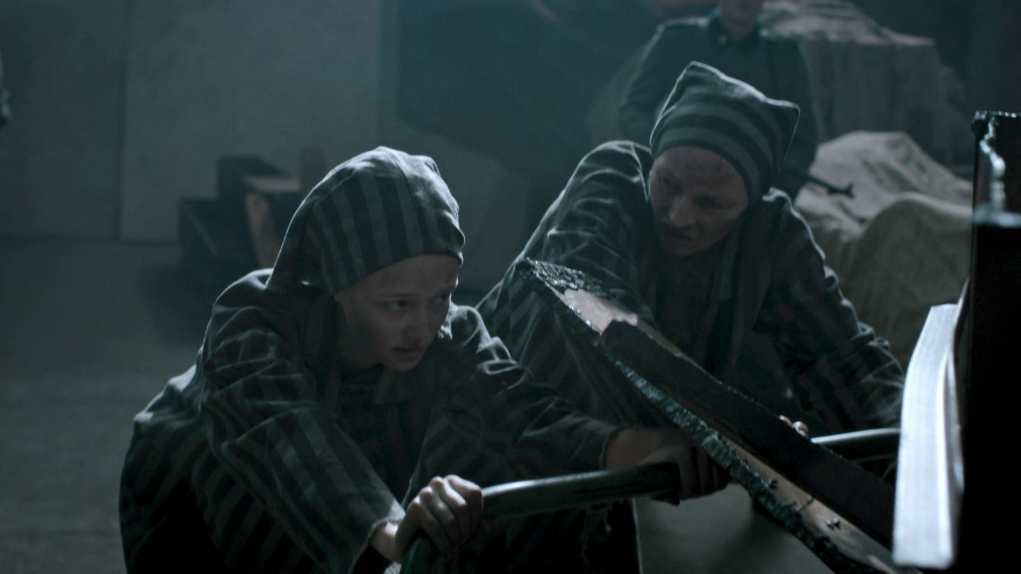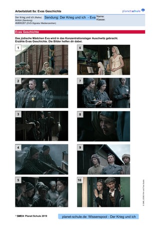 Ist das erfolgt, können sich die Schülerinnen und Schüler intensiver mit dem perfiden System im Konzentrationslager Auschwitz auseinandersetzen: Die Opfer wurden dort bei ihrer Ankunft ermordet oder zur Arbeit gezwungen. Geschorene Köpfe, eintätowierte Nummern, Lagerkleidung – die Menschen wurden ihrer Individualität, ihrer Würde beraubt. Dies können die Schülerinnen und Schüler mithilfe der Bilder und der Beschreibung der 14-jährigen Helga erkennen, die im Film zitiert wird (TC 03:57). (Arbeitsblatt 8b)