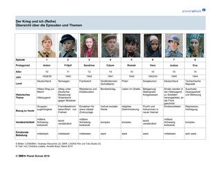 Diese fünf Elemente sind mit Bedacht miteinander verwoben: Im Mittelpunkt jeder Folge steht die jeweilige fiktive Handlung, gedreht mit Schauspielerinnen und Schauspielern. Die Protagonistinnen und Protagonisten sind zwischen zehn und 15 Jahre alt, die jungen Zuschauerinnen und Zuschauer fühlen mit ihnen und ihren Geschichten. Es sind Erlebnisse im Krieg, und naturgemäß erzählen sie auch von Angst, Leiden und harten Schicksalsschlägen.