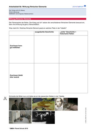 Im nächsten Schritt untersuchen die Schülerinnen und Schüler Funktion und Wirkung der filmischen Elemente. (Arbeitsblatt 9b: Wirkung filmischer Elemente)