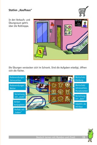 Hinweis: Das Booklet bezieht sich auf die DVD-Rom-Fassung des Spiels, die nicht mehr vertrieben wird. Sie trainiert – anders als die App und das Onlinespiel – auch die korrekte Aussprache und enthält zwei weitere Lern-Stationen. Alle anderen Informationen im Booklet können jedoch auf die anderen Versionen übertragen werden.