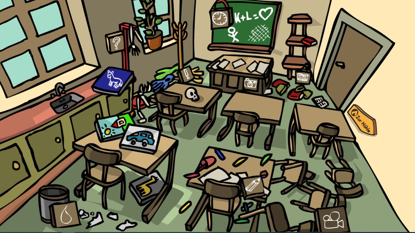 Mit dem interaktiven Lernspiel „Deutsch lernen mit Mumbro & Zinell“ kann jeder selbständig lernen. Oder man kann es im Unterricht einsetzen. Startpunkt ist die Höhle von Mumbro und Zinell: Stecker rein, Hebel runter, und los! Wer möchte, kann sich mit einem Klick auf das Porträtbild (links oben) seinen ganz persönlichen Avatar gestalten.