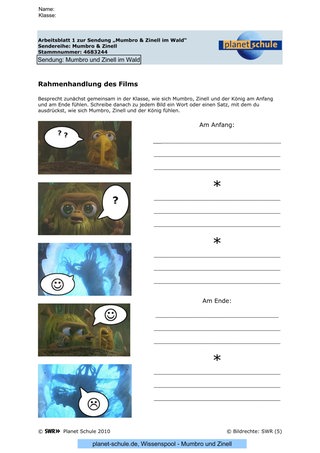 Zum Verständnis dieser Rahmenhandlung sehen die Schüler den Film zunächst ganz an und betrachten anschließend noch einmal die Rahmenhandlung am Anfang und am Ende, wobei sie alleine oder zusammen mit ihrer Lehrkraft das Arbeitsblatt 1: Rahmenhandlung bearbeiten.