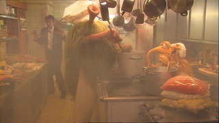 The King is hungry and orders Mumbro and Zinell to bring him “something to eat”. Mumbro lands in a supermarket and Zinell gets stuck in the freezer in the kitchen of a restaurant. They both help Niko, the owner’s son, to cook so that the restaurant can open on time. Since the food is very particular they are not sure of their success. And they have to think of the King’s grumbling stomach, too.
