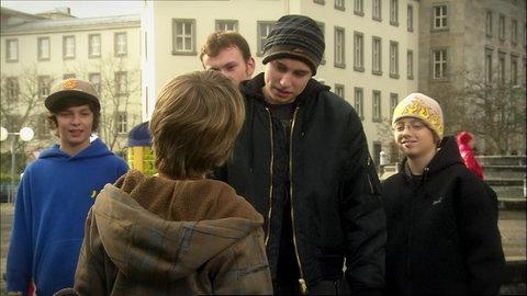 The King wishes to own a “means of transportation”. Mumbro und Zinell find themselves in the middle of a very busy intersection and are almost run over by a skater called Timo. They decide to accompany Timo to the skating contest. But when they are about to take an underground train they get separated from Timo and are caught dodging the fare. At the last minute they reach the skating rink and also find a solution for their mission.