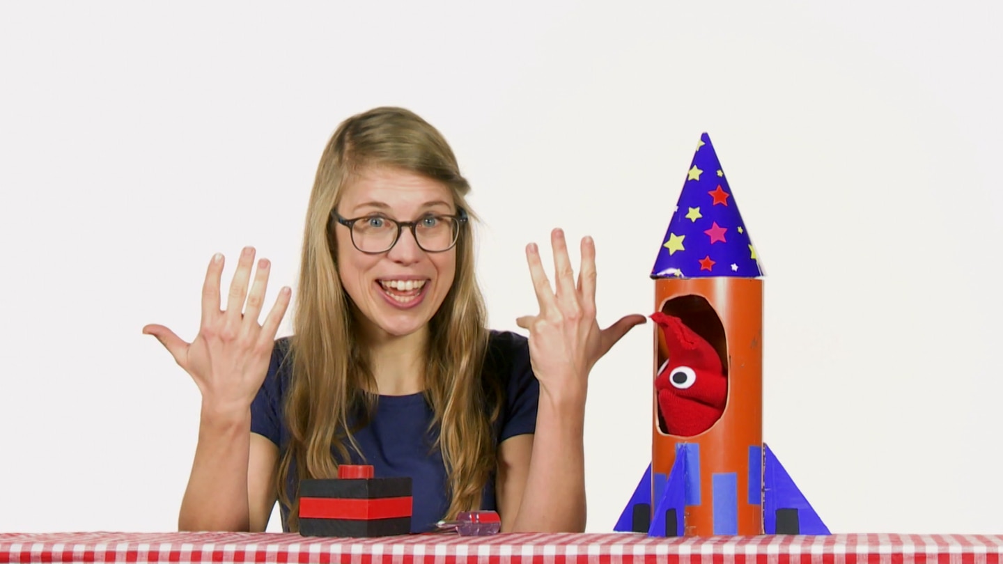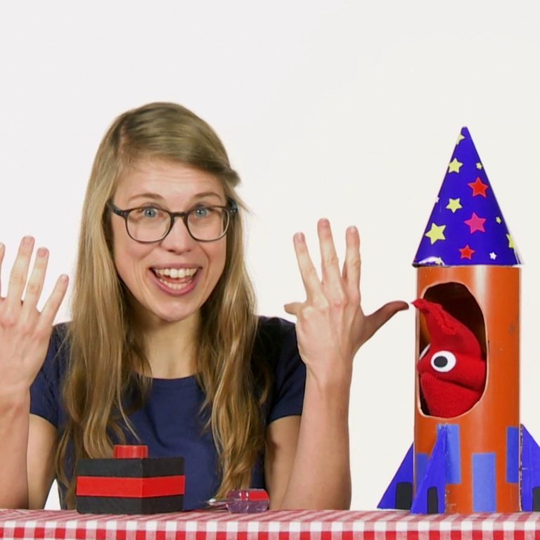 Socke hat ein Raumschiff gebaut. Esther glaubt nicht, dass das Raumschiff starten kann, zählt aber trotzdem den Countdown. Wird Socke abheben?
