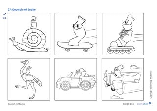 Die Klasse schaut sich den Clip an und spricht über das Gesehene. Auf Materialblatt 27 gibt es allerlei Bewegliches, mit dem ein Schnelligkeitsranking aufgestellt werden kann: Schnecke, Skateboard, Inliner, Vogel, Auto und Flugzeug.