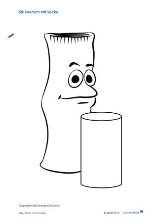 Nach dem Sehen des Clips überlegen die Kinder: Was trinkt die eigene Sockenpuppe gerne? Die Kinder malen die Socke und ihr Lieblingsgetränk auf dem Materialblatt aus. Anschließend stellen die Kinder ihre Zeichnungen vor ("Das ist meine Socke xy. Sie / Er trinkt gerne Tee").