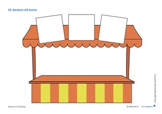 Die Klasse schaut den Clip und spricht über die Handlung. Dann spielen die Kinder Verkaufen/Einkaufen – wie Socke und Esther. Dazu bilden sie Kleingruppen. Die Kinder malen auf kleine Karten Gegenstände, die gekauft werden können. Zusätzlich gibt es ein Materialblatt, das Sockes Stand zeigt. Das Blatt legen die Kinder in die Mitte. Es gibt Käufer und Verkäufer.