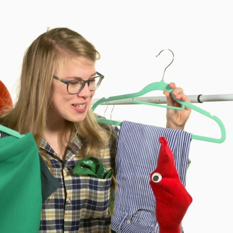 Esther steht ratlos vor ihrem Kleiderschrank und weiß nicht, was sie anziehen soll. Jetzt möchte auch Socke etwas anziehen, aber nichts passt. Doch dann findet Esther das perfekte Kleidungsstück für Socke…