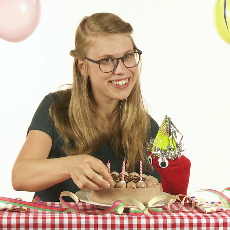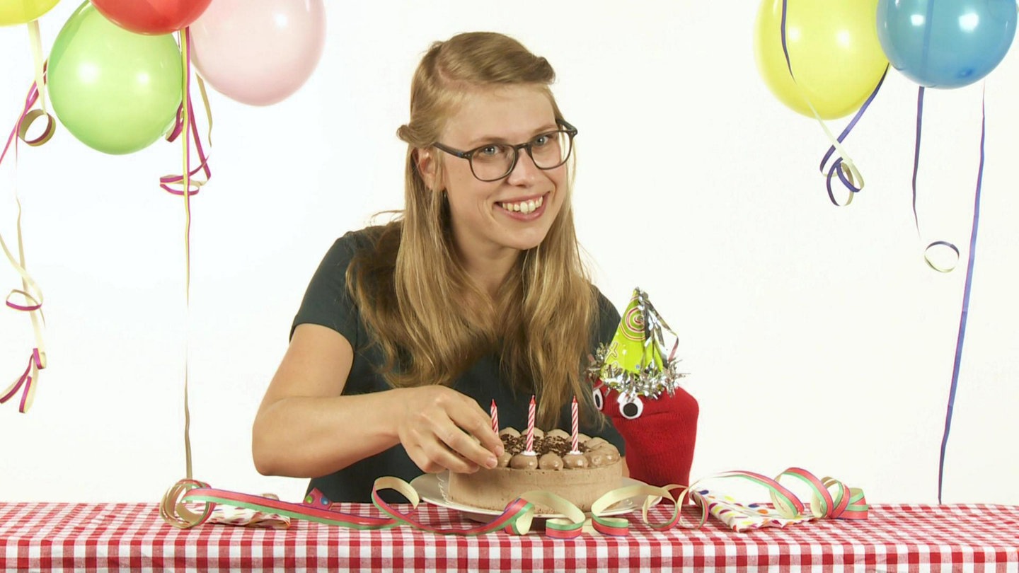 Esther hat eine Geburtstagstorte für Socke gebacken. Doch wie viele Kerzen müssen auf die Torte? Wie alt wird Socke eigentlich?