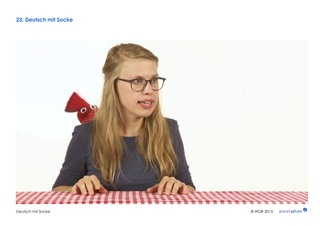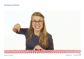 Die Kinder verfestigen die im Clip genannten Begriffe "hinten", „oben“, "unten" und "unter". Dazu stehen vier Screenshots zur Verfügung. Diese werden im Plenum besprochen. Dann geht ein Kind vor die Tür. Ein vorher vereinbarter Gegenstand wird im Raum versteckt. Das Kind wird wieder hereingebeten. Es fragt: "Wo ist …? Ist … unter dem Tisch?" Die anderen Kinder antworten. Der Sucher darf vier Mal fragen (hinten, oben, unten, unter). Findet er den Gegenstand nicht, wird er ihm gezeigt. Dann ist das nächste Kind dran. Je nach Leistungsstand der Kinder kann die Lehrkraft diese Begriffe um Präpositionen wie zum Beispiel "hinter", "in", "auf" oder auch "neben" und "vor" erweitern.