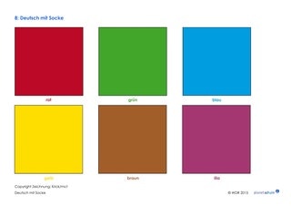 Gearbeitet wird damit folgendermaßen: Das Kind mit dem Blatt 6 fragt: "Welche Farbe hat die Zahnbürste?" Das Kind mit dem zweiten Arbeitsblatt schaut auf seinem Arbeitsblatt nach und antwortet: "Rot / Die Zahnbürste ist rot." Dann malt das erste Kind die erste Zahnbürste rot an. Anschließend wird getauscht. Für Kinder, die noch keine Farben kennen, gibt es ein Materialblatt auf dem beschriftetet Farbkästen sind. Die Kinder tippen auf die richtige Farbe.