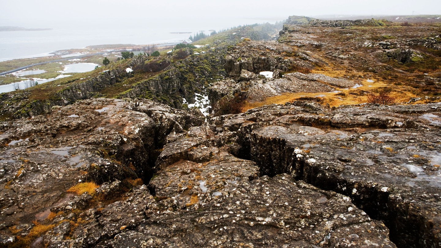 Kontinentalplatten: Gesteinsschicht mit Rissen