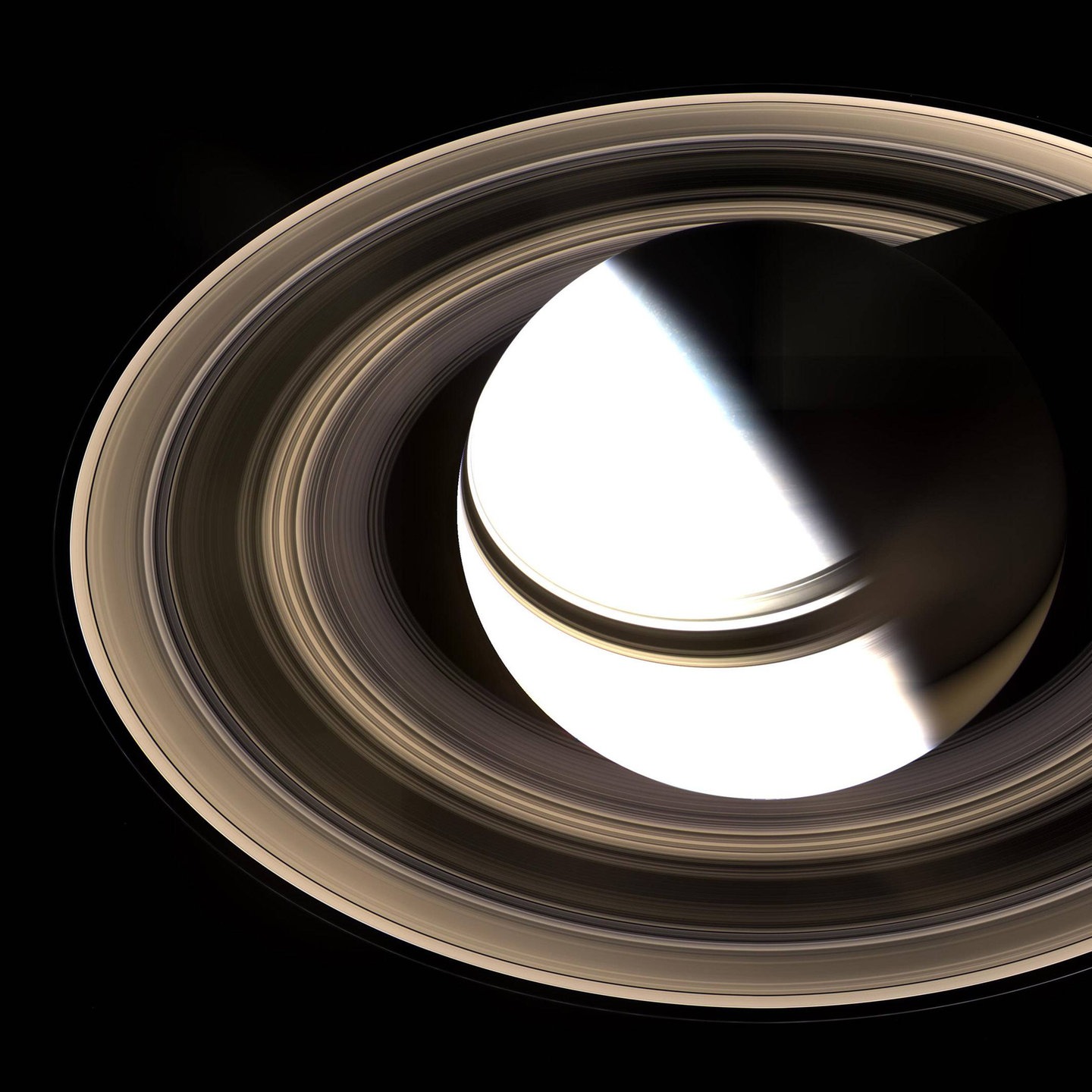 Aus der Ferne sehen die Ringe aus wie ein festes Band rund um den Planeten. Doch mit Berechnungen und speziellen Messungen fand man heraus: Die Ringe bestehen aus Milliarden kleiner Staubkörner, Eiskristalle und Gesteinsbrocken. Sie alle kreisen gleichmäßig um den Saturn, und zwar in einer dichten, flachen Wolke, so dass sie im Fernrohr wie eine Scheibe erscheinen.