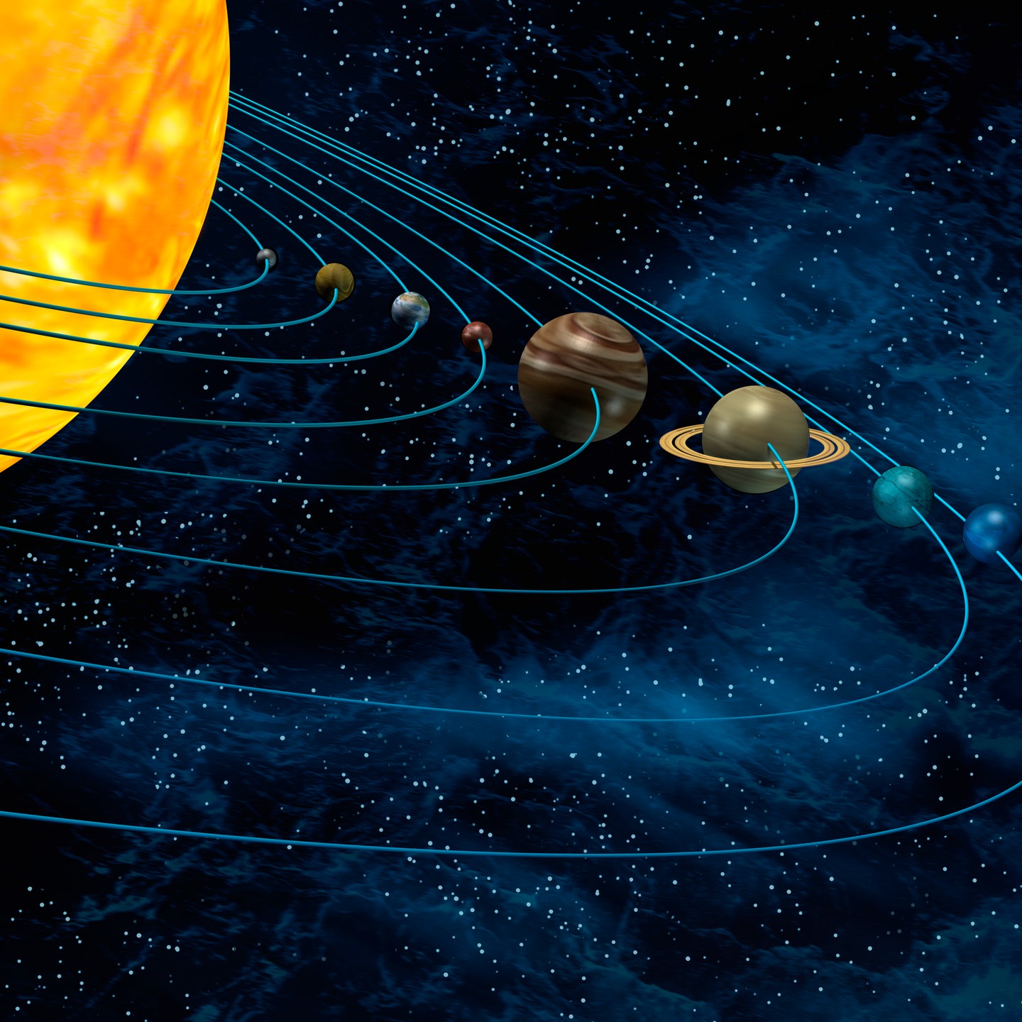 Die leichten Gase wurden dabei weit nach außen geschoben, der schwerere Staub und Gesteinsbrocken blieben in der Nähe der Sonne. Aus diesen Staub- und Gaswolken entstanden im Laufe der Zeit die Planeten. Daher gibt es im Sonnensystem außen die Gasplaneten, weiter innen die Gesteinsplaneten – darunter unsere Erde – und ganz in der Mitte die Sonne. Sie enthält 99% der Masse des Sonnensystems und hält mit ihrer Schwerkraft alles zusammen.