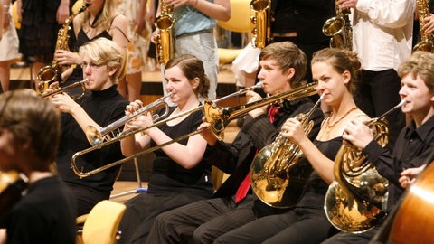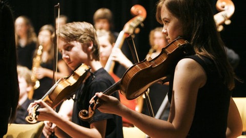 In der klassischen Musik spricht man von drei Instrumentenfamilien: Es gibt Streichinstrumente, Blasinstrumente und das Schlagwerk. Im Orchester sitzen die Musiker und Musikerinnen entsprechend der Familie ihres Instruments: Das Schlagwerk hat seinen Platz in den hintersten Reihen. In der Mitte sieht der Dirigent oder die Dirigentin. Links finden sich die Holz- und rechts die Blechbläser. In den vordersten Reihen sitzen die Streicher.