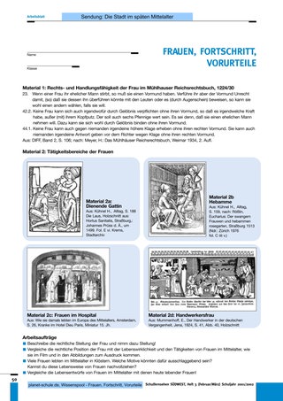 Als Einstieg, um dann einzelne Bereiche zu vertiefen, oder als Ausblick, der zeigt, dass weibliche Existenz in der Stadt des Mittelalters nicht auf das Dasein als Handwerksgattin begrenzt war. Dabei ist der Film zum Einsatz sowohl in der Sekundarstufe 1, als Informationsfilm, aber auch in der Sekundarstufe 2, als Diskussionsgrundlage für die Erörterung der Rolle der Frau geeignet.