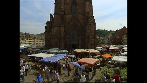 In sechs Abschnitten gibt der Film Einblick in das kommerzielle Leben einer mittelalterlichen Stadt. Am Anfang steht das Leben der Handwerker am Beispiel der Stofferzeugung beziehungsweise des Weinbaus. Der Alltag ist durch die enge Verbindung von Leben und Arbeit gekennzeichnet, aber auch durch die Zugehörigkeit der Handwerker zu den Zünften. Wichtigster Warenumschlagplatz ist der Markt und wichtigstes Zahlungsmittel das Geld.
