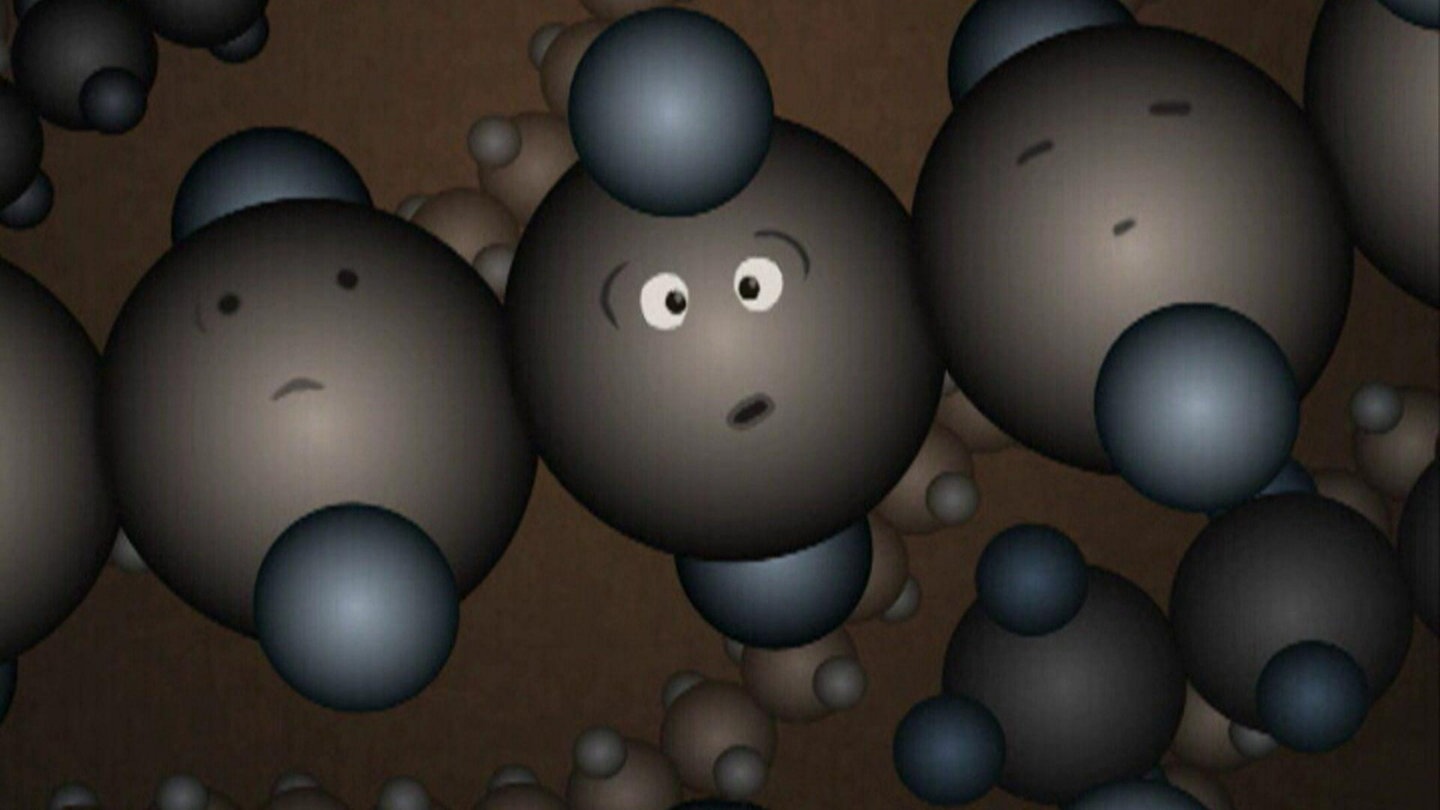 Ein Kohlenstoffatom zeigt uns, wie häufig dieses Element in unserer Umwelt vorkommt. Es steckt in der namensgebenden Kohle, aber auch in den Zellen von Pflanzen und Tieren. Verknüpft mit Sauerstoff fliegt Kohlenstoff auch durch die Luft.