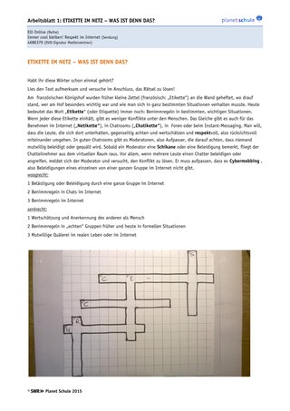 Arbeitsblatt 1: Etikette im Netz – Was ist denn das?