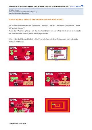 Arbeitsblatt 2: Vergiss nie, dass auf der anderen Seite ein Mensch sitzt