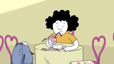 Hier sollen die Schüler die Schlusssequenz des Kurzfilms mit Szenen-Screenshots ordnen (nummerieren oder ausschneiden) und nacherzählen. Diese Aufgabe bietet sich beispielsweise an, wenn man vor dem Abspielen des Films auf einen Racheplan der Freundesklicke hinweist und die Schüler zum besonderen Hinschauen und Zuhören anhalten will. Die Übung lässt sich als Einzel- oder Gruppenübung verwenden.