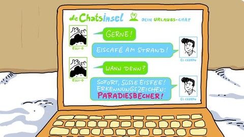 Hier sollen die Schüler die Rolle des Aufpassers spielen. Elli will sich mit ihrer „Online-Liebe“ in der Eisdiele treffen. Das Arbeitsblatt baut hier vor besagtem Treffen noch ein „beste Freundin“ – Gespräch ein. In Dialogstruktur sollen die Schüler als „beste Freundin“ oder „bester Freund“ Elli vor Naivität, unvorsichtigem Verhalten und rosarotem Blick bewahren. Die Übung will damit selbst-entdeckendes Lernen des richtigen Verhalten beim Umgang mit Unbekannten ermöglichen. Je nach Klassenstufe oder auch binnendifferenziert innerhalb einer Gruppe können dazu die Textbausteine des AB (unten) angeboten oder weggelassen werden. Das AB eignet sich als Einzelarbeit im Unterricht oder auch als Hausaufgabe.
