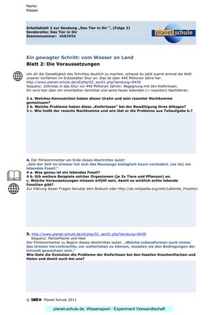 Wenn man besonderen Wert auf die großen Entwicklungsschritte legt, wie „vom Wasser an Land“, dann bietet sich auch ein einzelner Film (hier Film 2) als Block im Unterricht an – und der Verweis beziehungsweise eine geeignete Hausaufgabe (z.B. die angebotenen Arbeitsblätter) auf die beiden übrigen Filme.