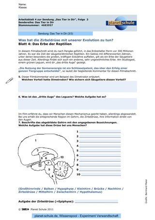 Heute findet sich das 3. Auge beim Leguan, mit dem er die Intensität der Sonne wahrnimmt und dadurch eine Drüse im Gehirn aktiviert, die seine Aktivität entsprechend regelt. Dieses System findet sich abgeleitet auch als Erbe bei uns, denn die Zirbeldrüse wird ebenfalls über das Erregungsmuster der Sehzellen unserer Augen aktiviert. Sie steuert unseren Tag- und Nachtrhythmus.